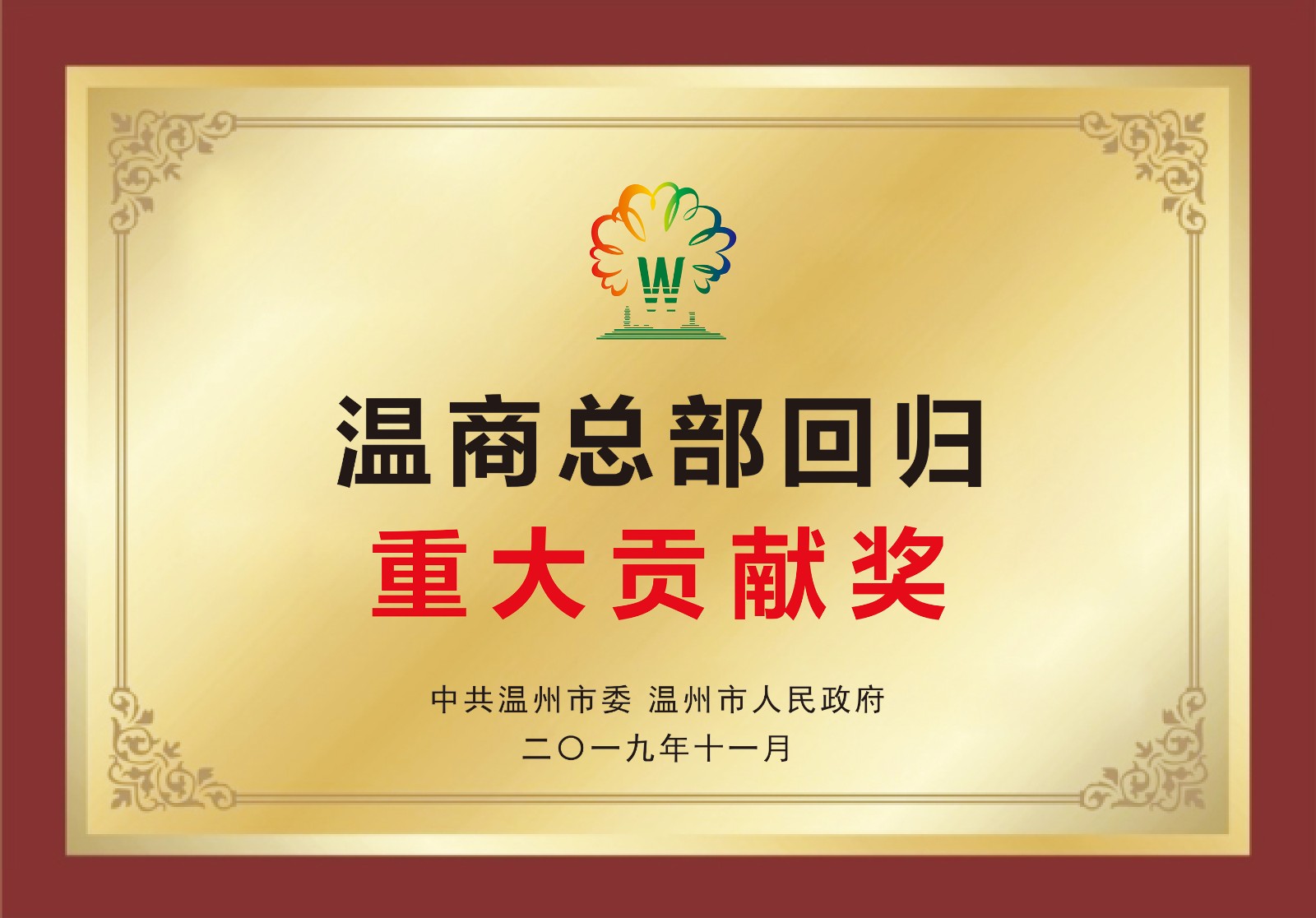 溫商總部回歸重大貢獻獎